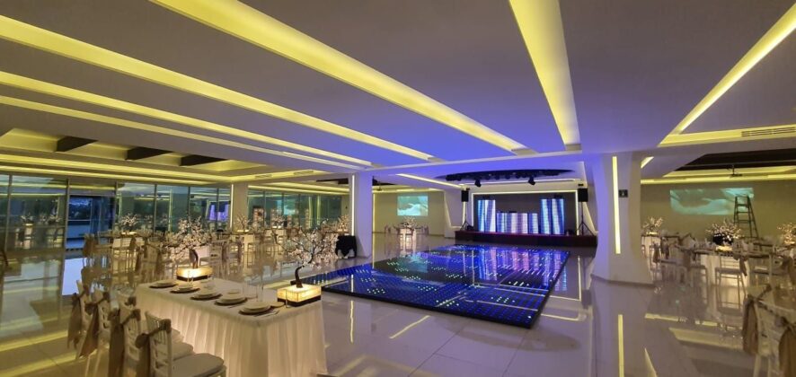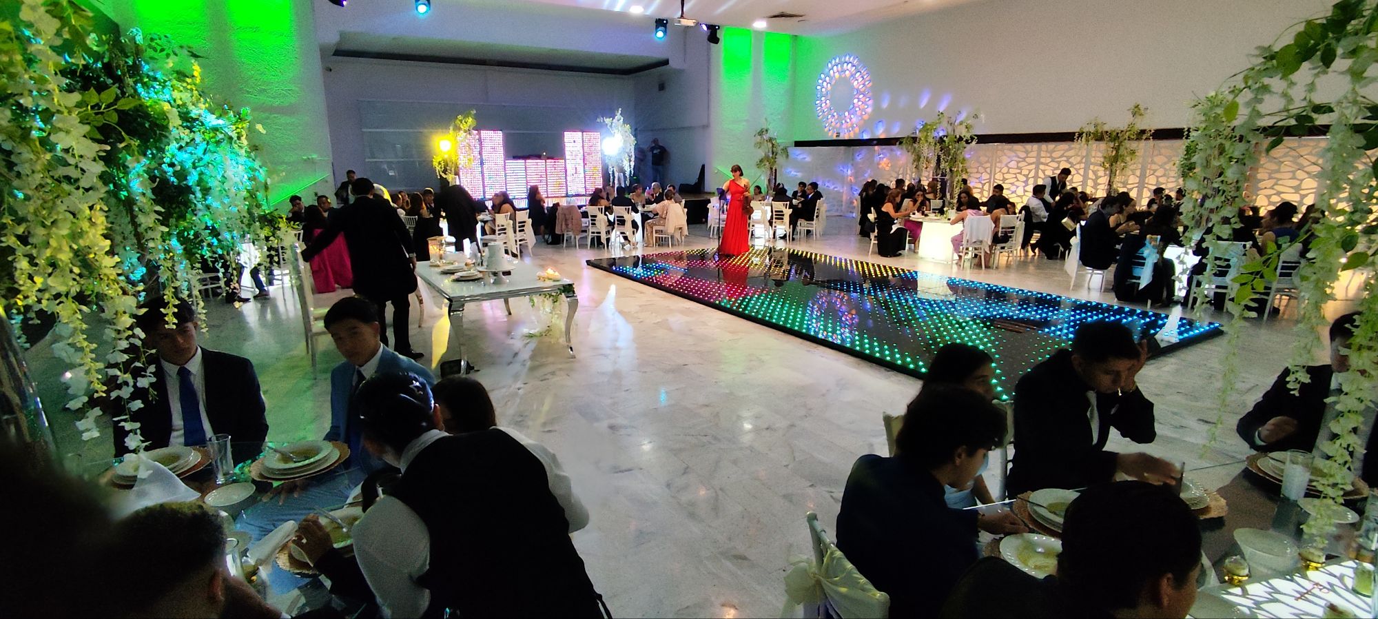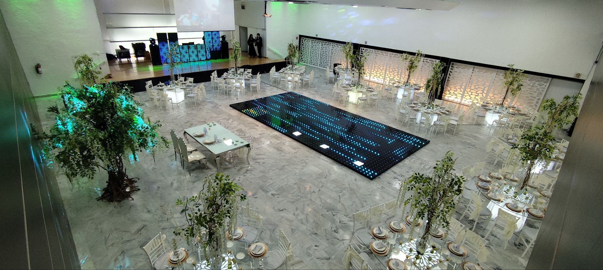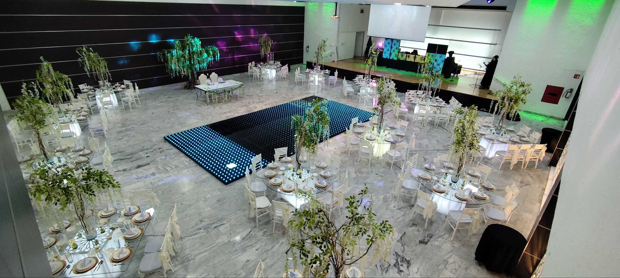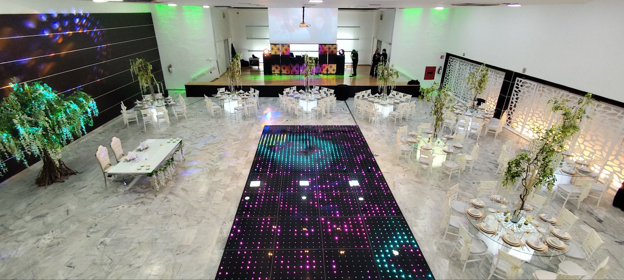 - Porque te montan una pista LED, luces, pantallas, DJ o grupos versátiles y todo el sistema de audio para que el ambiente esté siempre encendido.