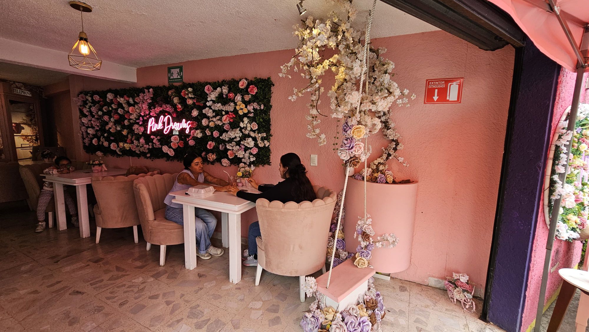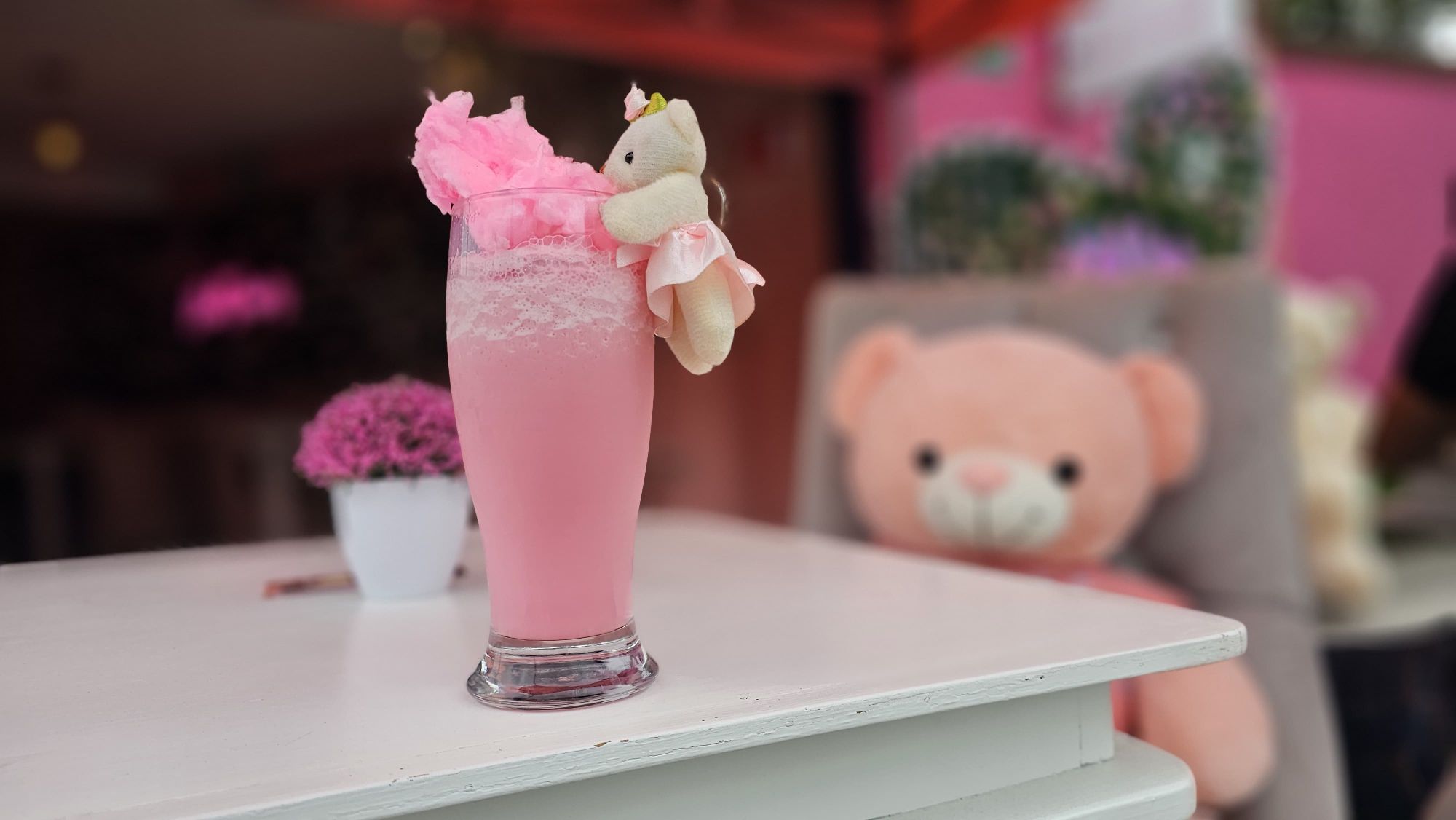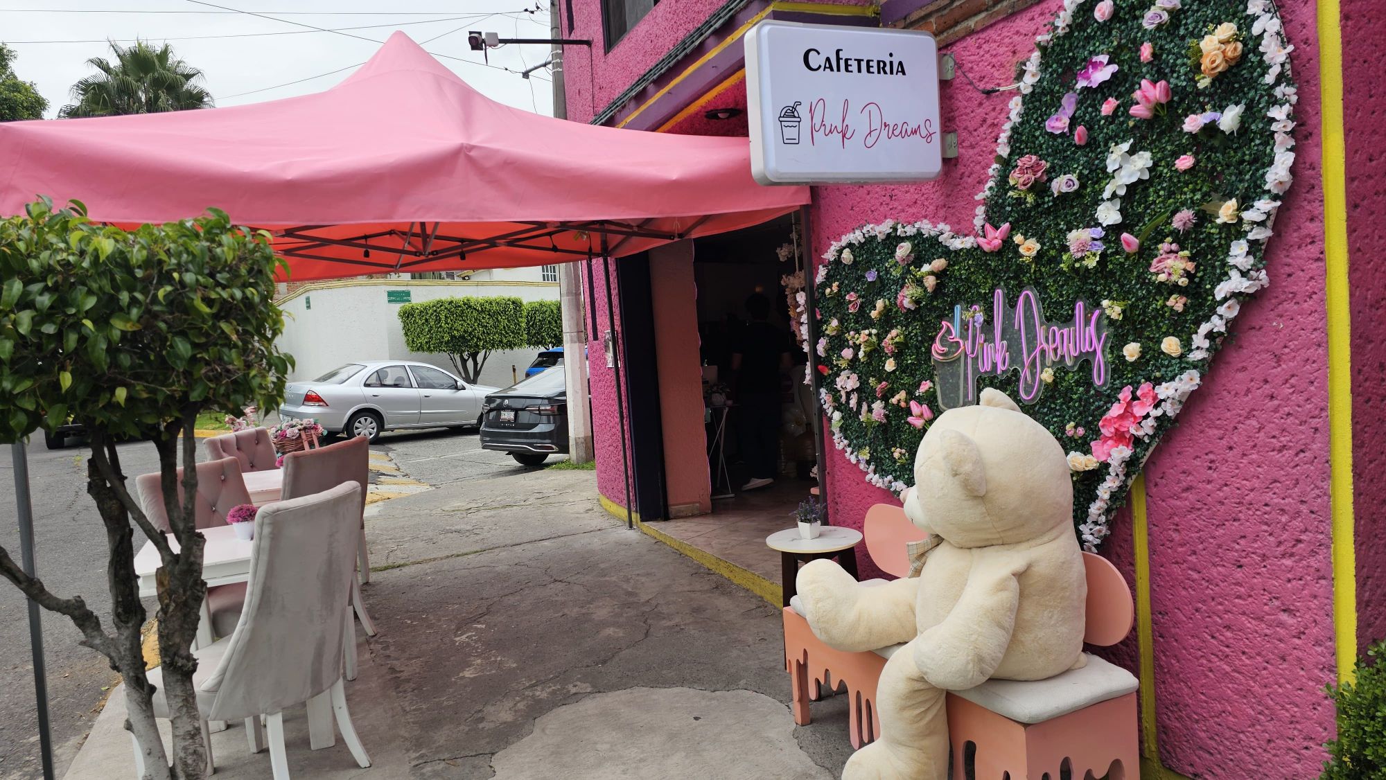 ¿Y qué tiene de especial Pink Dreams? TODO. El lugar es completamente rosa, con decoración de ensueño y mil rincones para las fotos bonitas. Y cuando pides una bebida fría… ¡te regalan un osito tierno que parece salido de otro planeta! Es el personaje principal de la cafetería y sale hasta en las paletas de ternurines, que son como el postre más bonito y antojable del lugar.