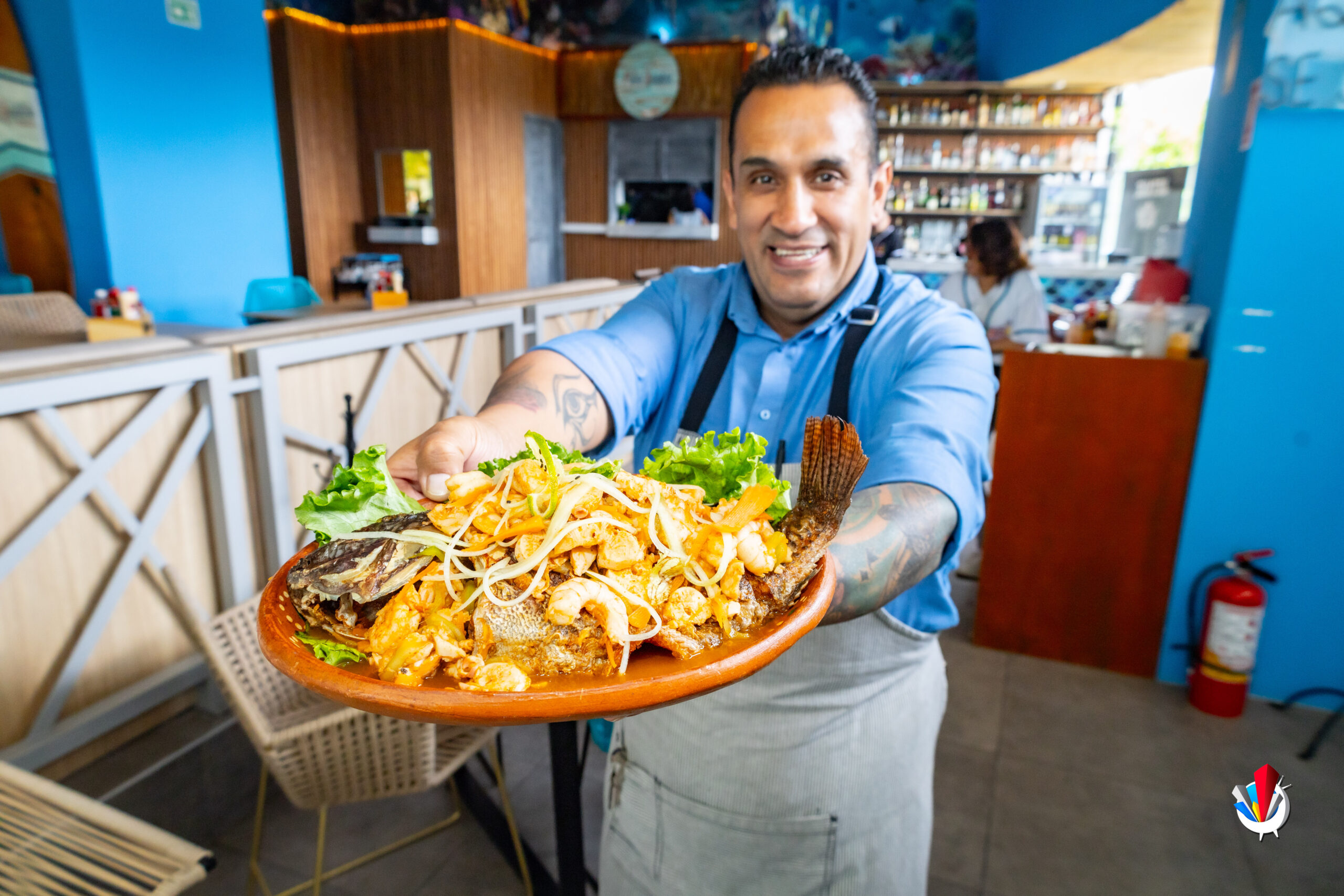 Aquí no se andan con rodeos: platillos como la mojarra rellena de pulpo y camarones al ajillo o la famosísima Torre de Mango con atún fresco, camarón curtido, aguacate y pepino, te van a hacer cerrar los ojos y decir: “¡ay nanita, esto sí sabe a vacaciones!”