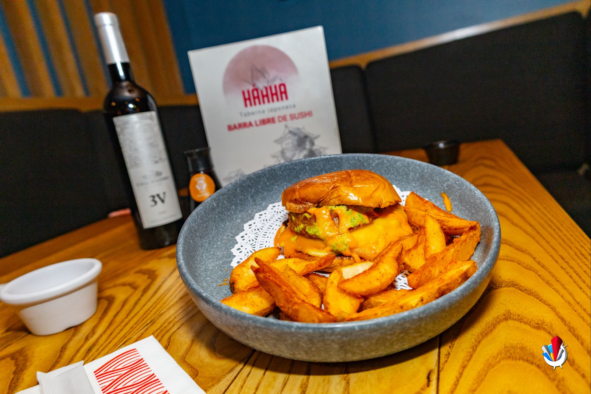 Y si pensabas que solo se trataba de sushi, sorpresa: la hamburguesa de wagyu «La Háhha burger» en pan brioche, gratinada con gouda y cheddar, con aderezo de serrano y nuetra mermelada de tocino, es de esas que ponen la vara alta en la zona. Una hamburguesa de respeto, que los satelucos tenemos que presumir.