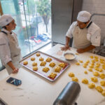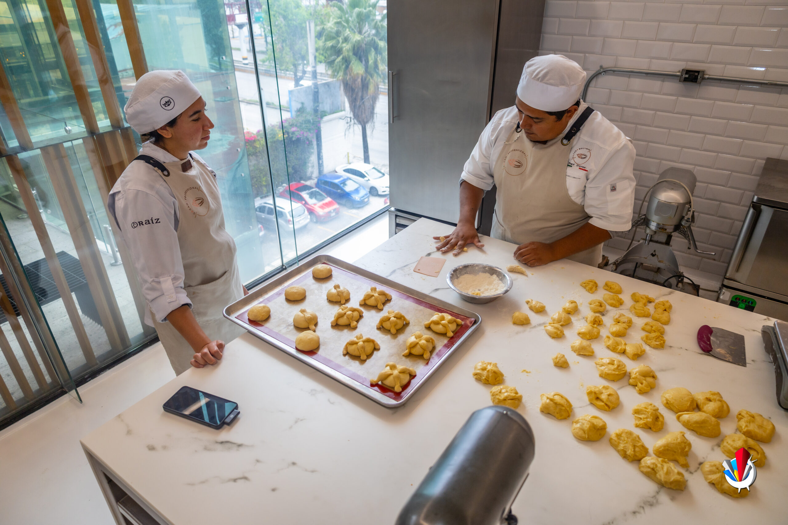 Desde que entras, el ambiente te envuelve. El aroma a pan recién horneado y a cacao puro se mezcla con la emoción de ver a los alumnos preparando postres que parecen obras de arte. Todo aquí está hecho con base de masa madre, lo que le da a cada pan una textura y sabor que no se olvida.