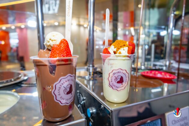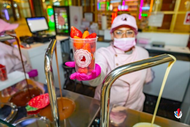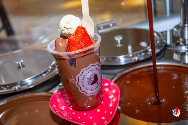 Y lo mejor de todo es ver las fuentes de chocolate cayendo sobre las fresas frescas. Es hipnótico. Como ver una fogata… pero en dulce.