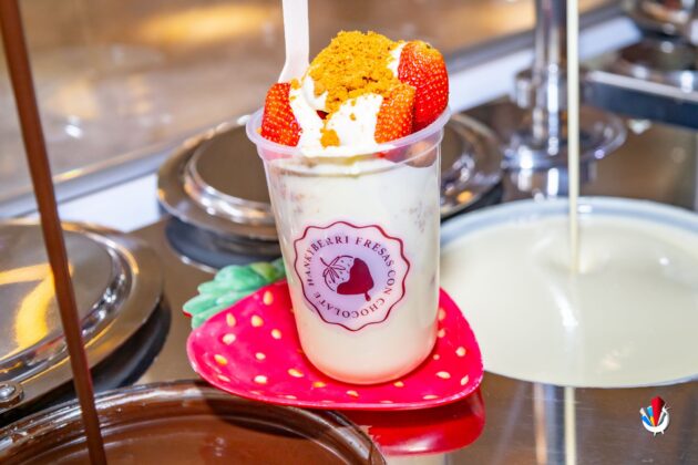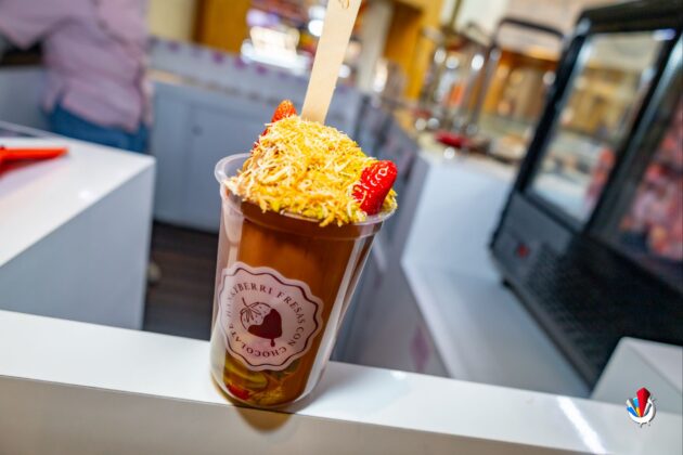 Para cerrar con broche de oro: fresas con chocolate de leche y topping de mazapán. Aquí sí me pegaron directo en la infancia. Ese saborcito a México, a antojito de tianguis dominguero, pero llevado a nivel premium… uff.