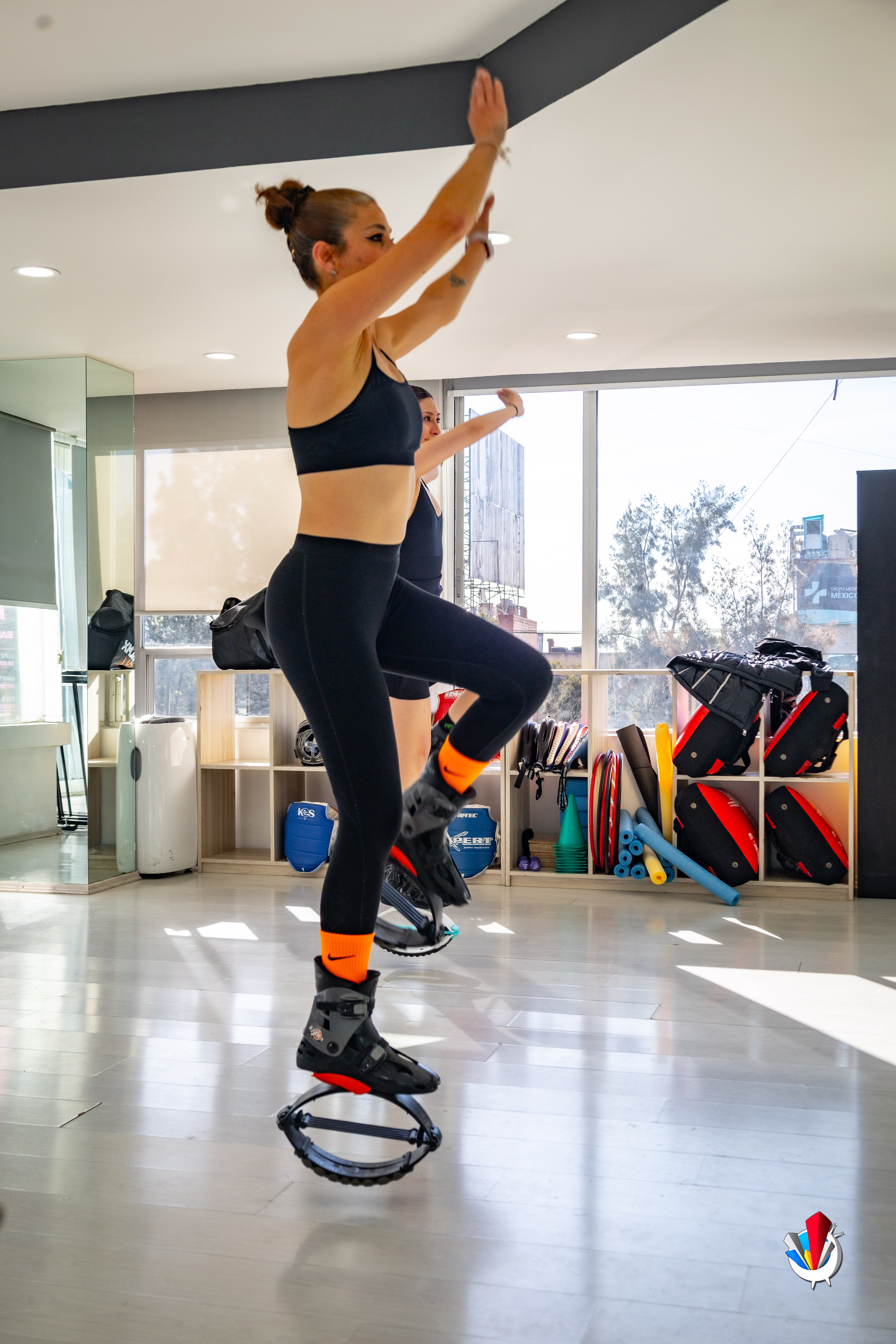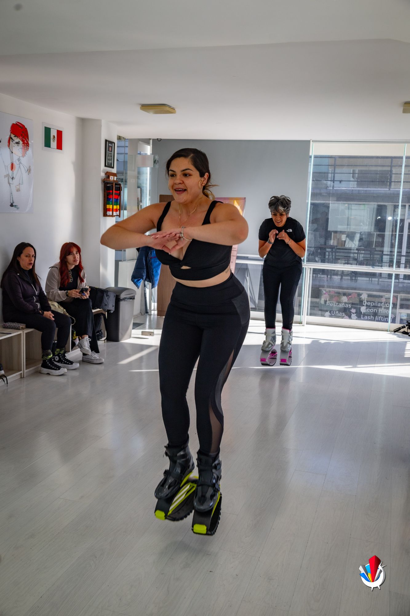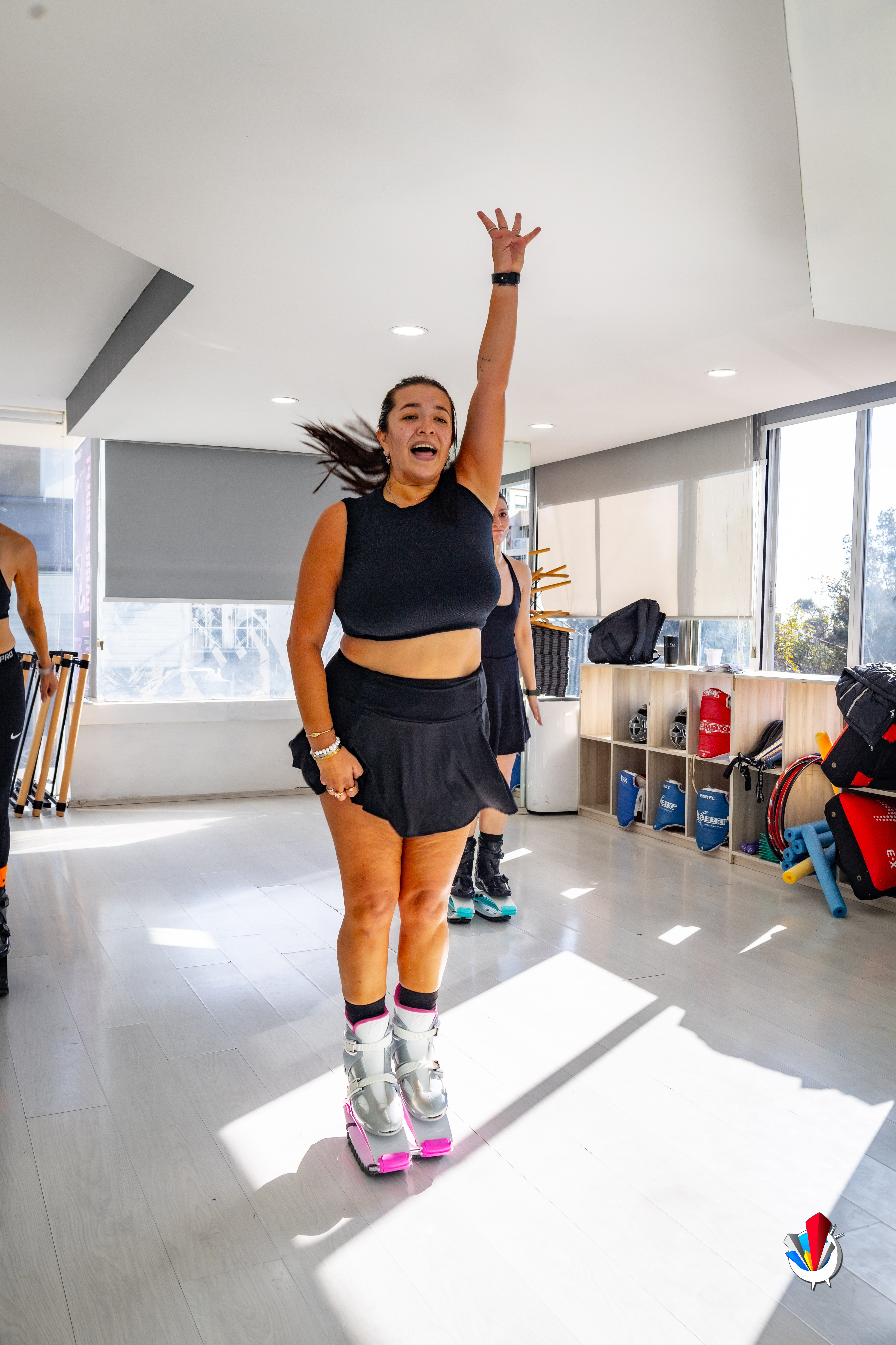 La cosa es simple, pero poderosa: aquí entrenas con botas de rebote y eso cambia todo. En lugar de sentir el impacto típico del cardio (ese que al día siguiente te hace bajar escaleras como robot descompuesto), el brinco se siente ligero, como si el piso te regresara energía en vez de cobrártela con intereses. Y sí, se nota que el plan está bien armado: cardio, fuerza y coordinación, pero con la música poniéndote en modo “no me rindo porque está buenísima la rola”.