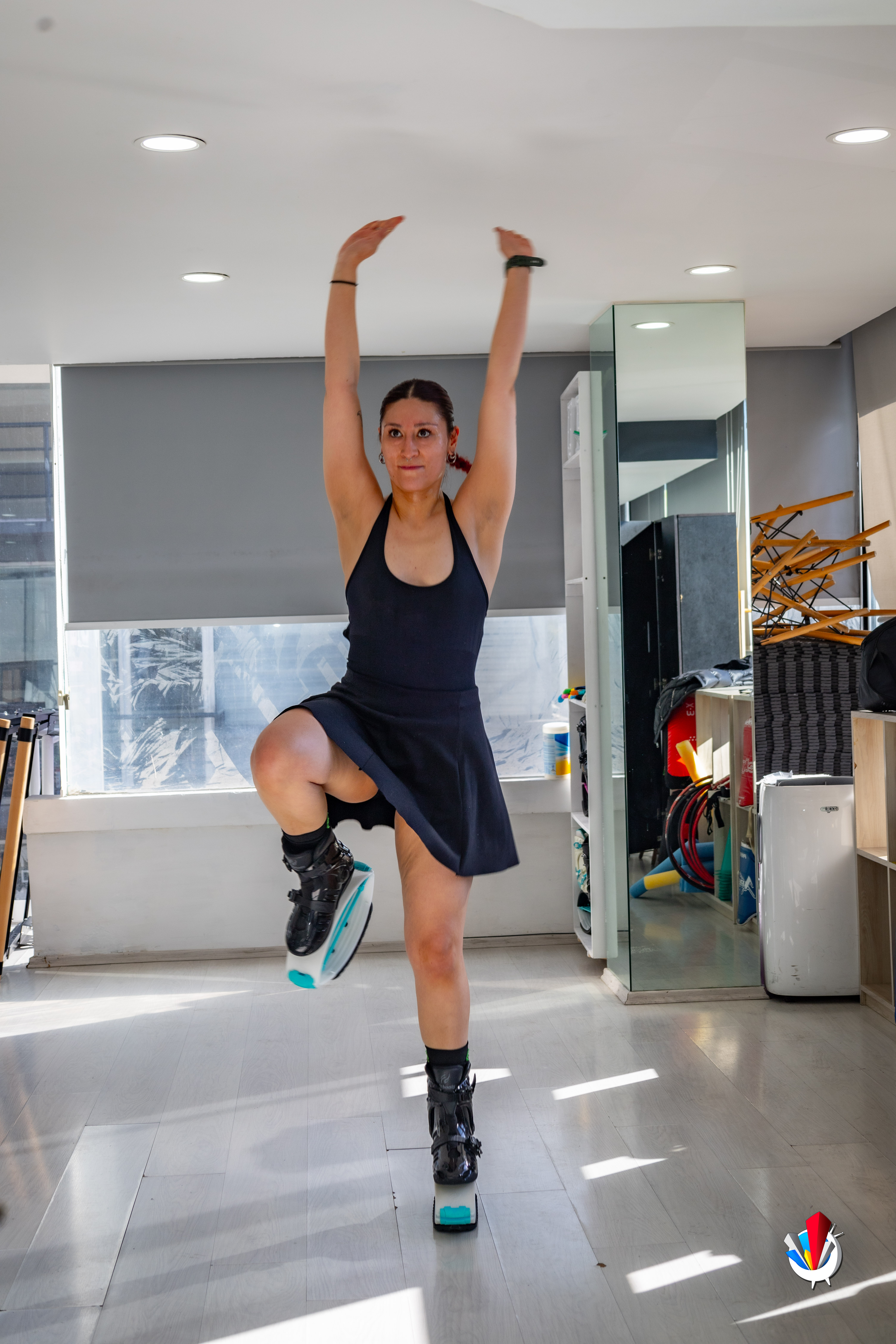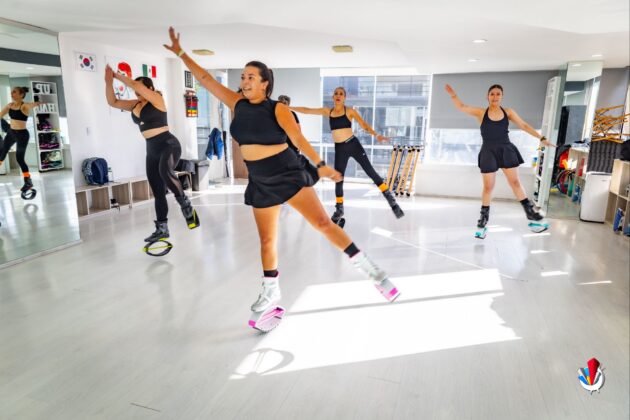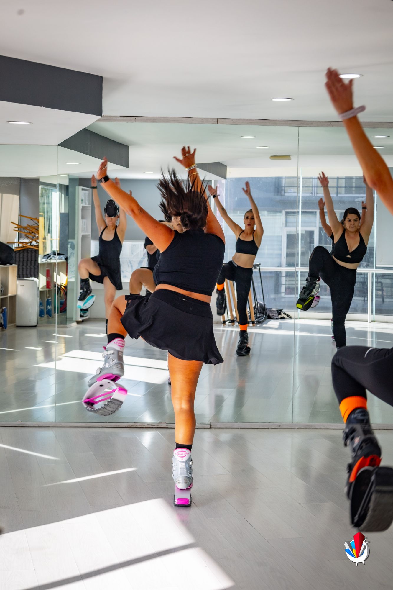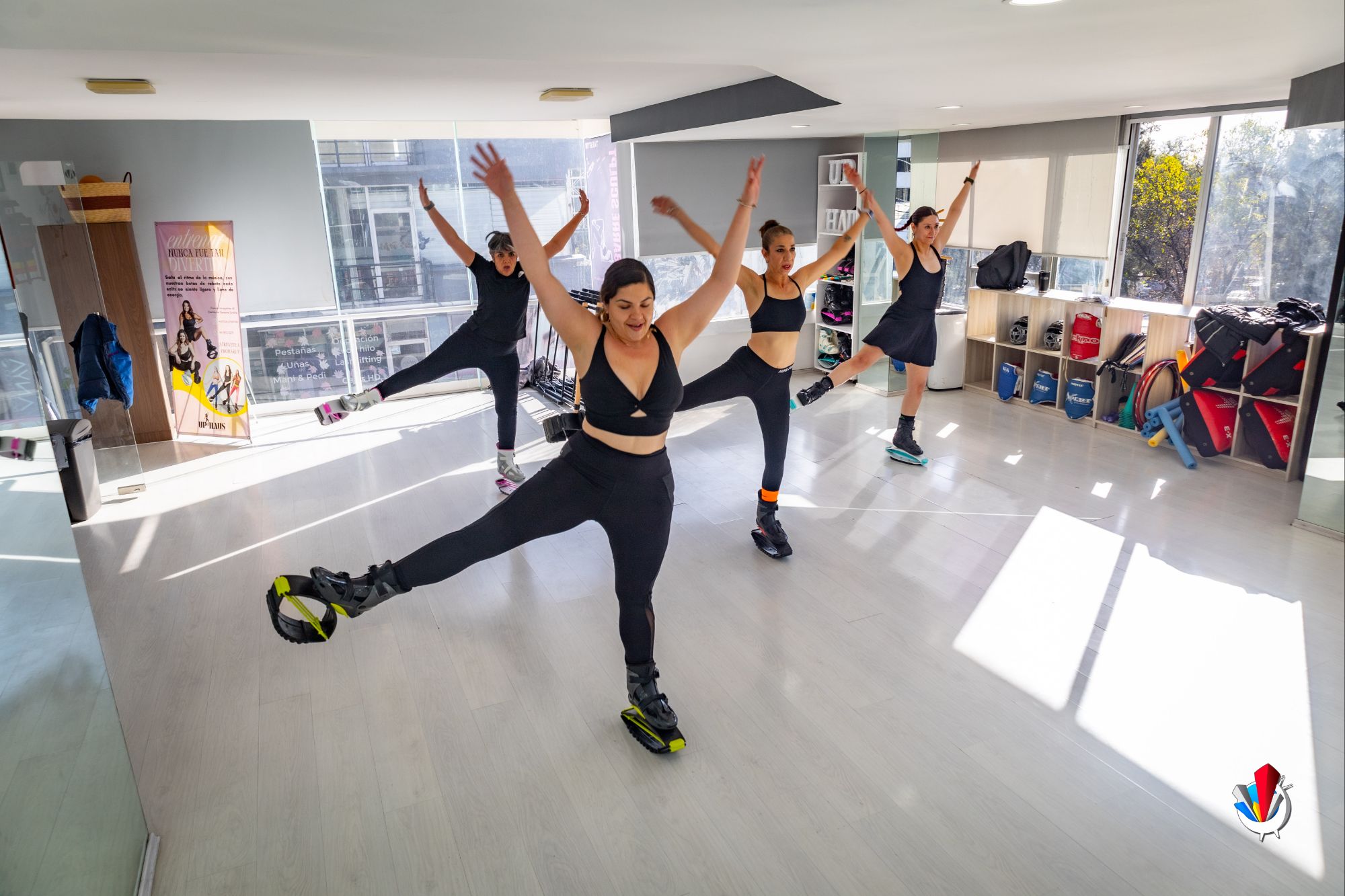 La cosa es simple, pero poderosa: aquí entrenas con botas de rebote y eso cambia todo. En lugar de sentir el impacto típico del cardio (ese que al día siguiente te hace bajar escaleras como robot descompuesto), el brinco se siente ligero, como si el piso te regresara energía en vez de cobrártela con intereses. Y sí, se nota que el plan está bien armado: cardio, fuerza y coordinación, pero con la música poniéndote en modo “no me rindo porque está buenísima la rola”.